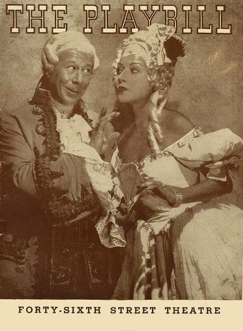 Du Barry Was a LadyOriginal Broadway ProductionA Musical Comedy in Two Acts Tryouts began November 9, 1939 at the Shubert Theatre, New Haven Opened December 6, 1939 at the 46th Street Theatre, NYC SynopsisLouis Blore, attendant in the men's washroom of the Club Petite in New York, wins $75,000 in the Irish sweeps. Having long had his eye on the star of the floor show, May Daly, Louis seeks to win her away from Alex Barton, the young man to whom she is engaged. He tries to put Alex away with knock-out drops, but mixes up the glasses and drinks the potion himself. During his delirium Louis dreams that he is Louis XIV and that May Daly is Du Barry, his mistress. His unsuccessful pursuit of May continues through the gardens and boudoirs of 18th century Versailles. When he awakens, Louis realizes that he has no chance with May and will have to settle for her friendship. CastBert Lahr (Louis Blore / King Louis XIV) Walter Armin (Jones / Docteur Michel), Jean Moorehead (Vi Hennessey / Madame de Villardell), Hugh Cameron (Bill Kelly / Le Duck de Choiseul), Harold Cromer (Florian / Zamore), Kay Sutton (Ann Barton / Mme La Duchesse de Grammont), Anne Graham (Sigana Sigan / Mme. La Cometesse de Camembert), Jacqueline Franc (Peggy Brown / La Baronne de Brie), Betty Allen (Molly Wincor / Mme. La Marquise du Pont L'Eveque), Marguerite Benton (Mary Gray / Mme. La Vicomtesse de Roquefort), Janice Carter (Ruth Frederick / Mme. Le Princesse Gruyere), Geraldine Spreckels (Ann Todd / Mme La Duchesse du Coeur Flottant), Johnny Barnes (Henri), Carl Nicholas (Gateman), Tito Renaldo (Manuel Gomez), Audrey Palmer (Cosette), Roy Ross (Pierre), David Shelly (Radio Announcer), Jack Stanton (Rene); The Internationals: Douglas Hawkins, Peter Hawkins, Carl Nicholas, Roy Ross, Jack Stanton Dancing Girls and Boys: Gloria Arden, Gene Ashley, Helen Bennett, Ruth Bond, Evelyn Bonefine, Boris Butleroff, Virginia Cheneval, Stella Clauson, Mary Daniels, Joel Friend, Ronda Gale, Russell Georgiev, Tilda Getze, Marion Harvey, Beverly Hosier, Dorothea Jackson, Adele Jergens, Mel Kacher, Frances Krell, Don Liberto, Barbara Pond, Jane Sproule, Paul Thorne, Edith Turgell, Lewis Turner, Marie Vannemen, Arlyne Varden, William Vaux, Nina Wayler Note the following cast replacements during the 46th Street Theatre run: Betty Allen (May Daly), Ruth Bond (Alice Barton), Bill Broder (Dancing Boy), Anne Graham (Mme. La Comtesse du Barry / Mme. La Duchesse de Grammont), Robert Herring (An International), Don Liberto (Rene), David Shelly (Captain of King's Guard), Geraldine Spreckels (Ann Barton), Jane Sproule (Cosette), Jack Stanton (Harry Norton), Billy Taft (Dancing Boy), Rose Tyrrell (Dancing Girl) Also note that during the Royale Theatre run, the role of May Daly was played by Gypsy Rose Lee. ScenesAct One Scene 1: The Club Petite, New YorkScene 2: Washroom at The Club Petite Scene 3: Gardens of Petite Trianon Scene 4: Du Barry's Bed Chamber Scene 5: Outer Hall Scene 6: Salon at Petite Trianon Act Two Scene 1: Pavilion at Petite TrianonScene 2: Outer Hall Scene 3: Room in Royal Apartment Scene 4: Club Petite, New York Musical NumbersBetty Grable appears on the cover of Life, December 11, 1939